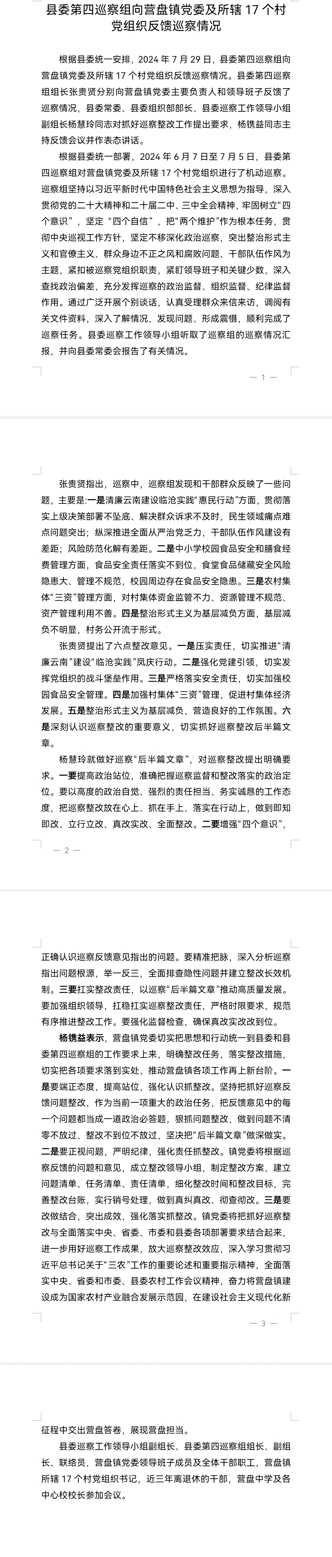 县委第四巡察组向营盘镇党委及所辖17个村党组织反馈巡察情况