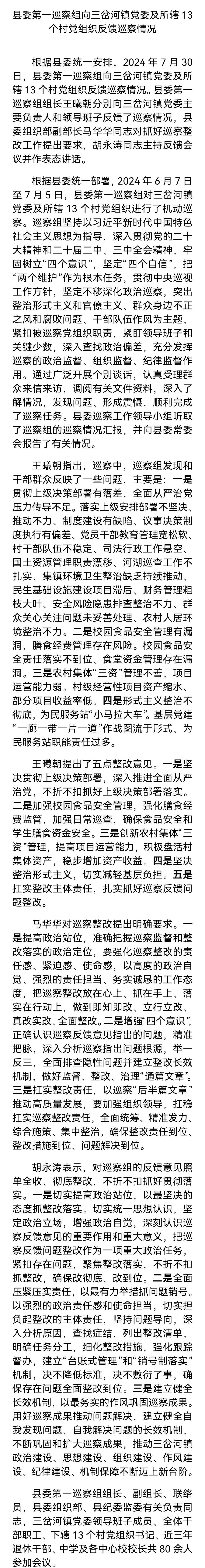 县委第一巡察组向三岔河镇党委及所辖13个村党组织反馈巡察情况