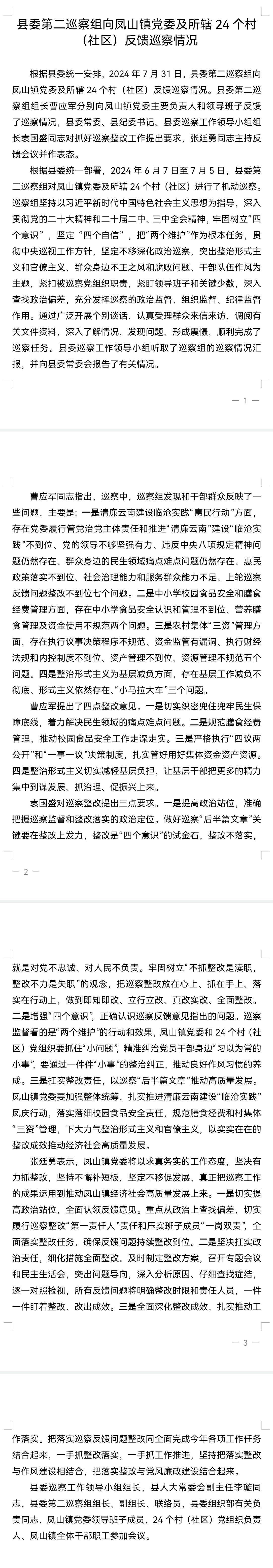 县委第二巡察组向凤山镇党委及所辖24个村(社区)反馈巡察情况